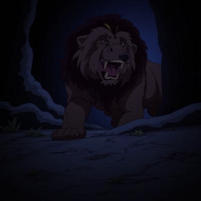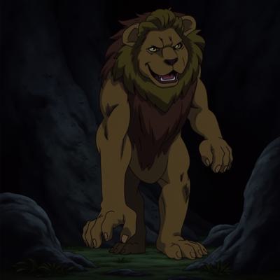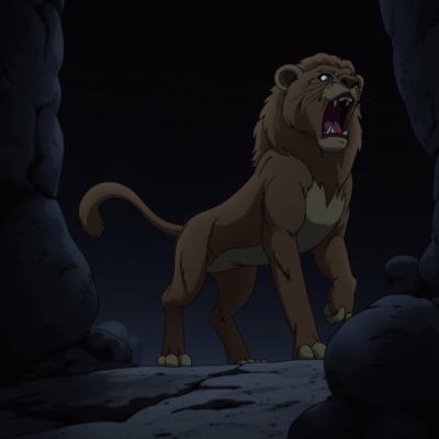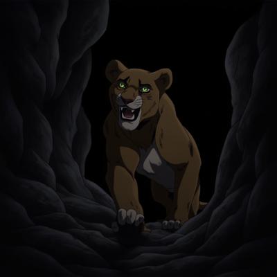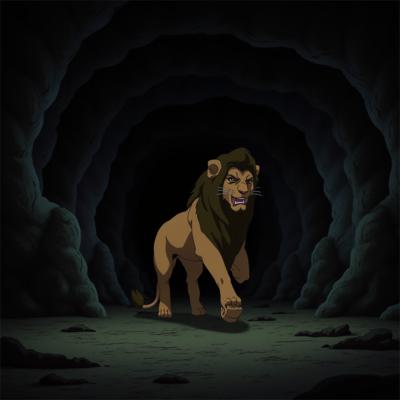 Лев выходит из темной пещеры