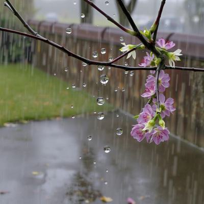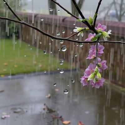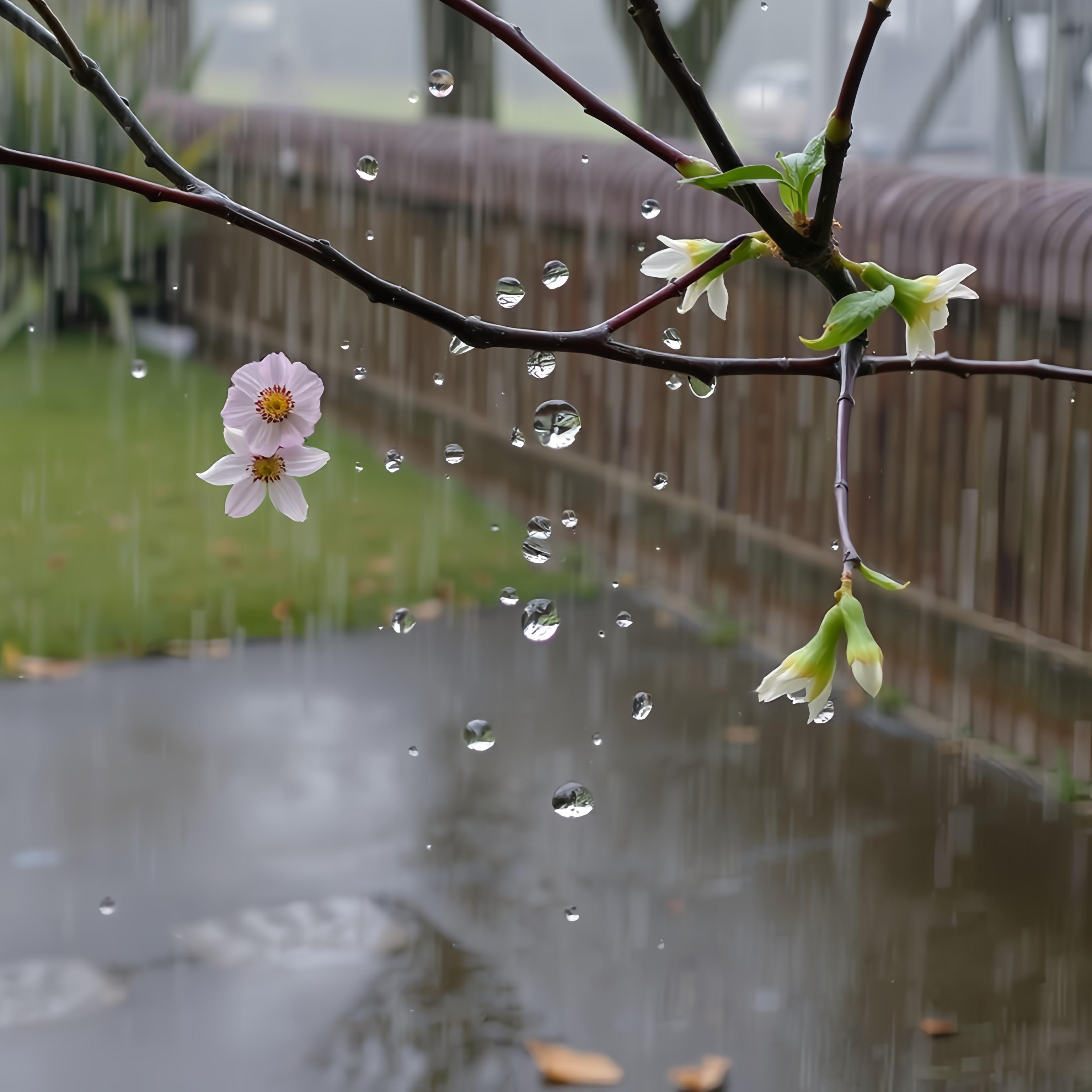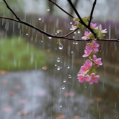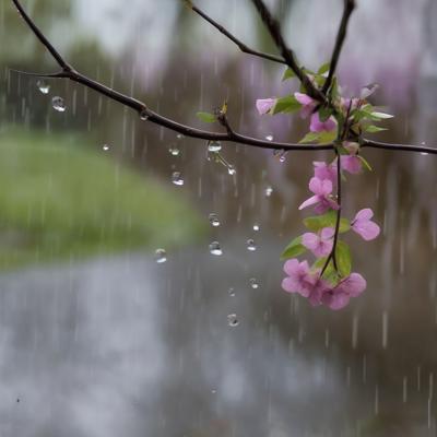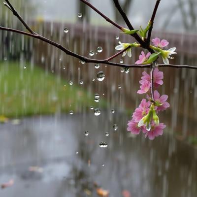 Добавить цветы. Задний план четкий. Крупные сияющие капли, [Улучшение крупных деталей [Уточнение для #6213513 'Весенний дождь ]']