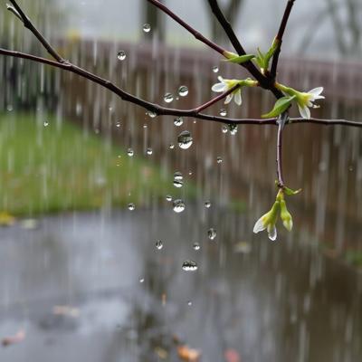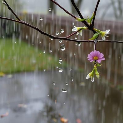 Добавить цветы. Задний план четкий. Крупные сияющие капли, [Уточнение для #6213513 'Весенний дождь ]'