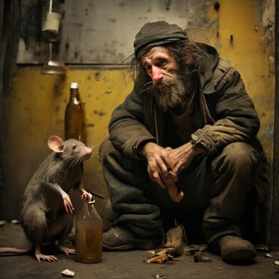 Человек с головой крысы пьяница и бомж