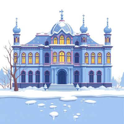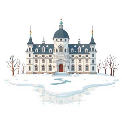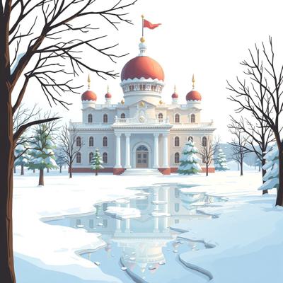 на белом фоне мультяшный зимний дворец растаял,