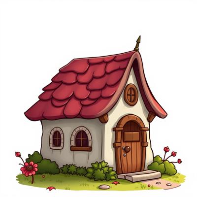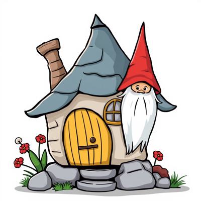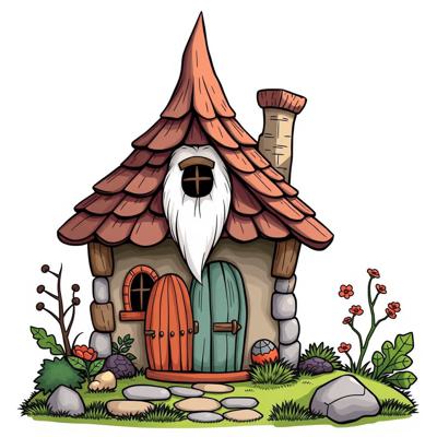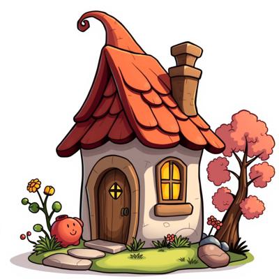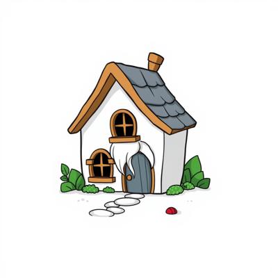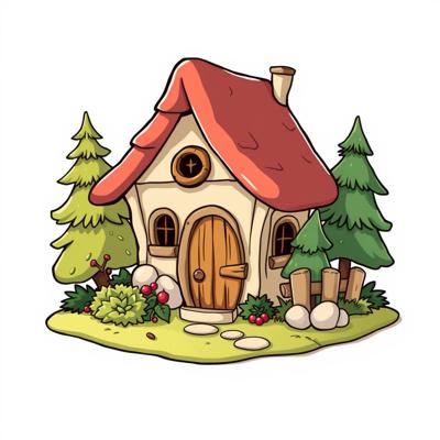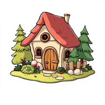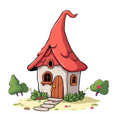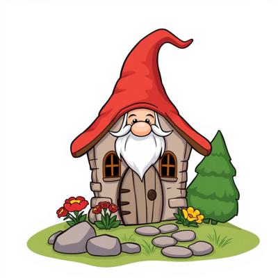 домик гномиков мультяшный на белом фоне,