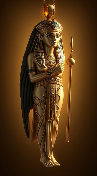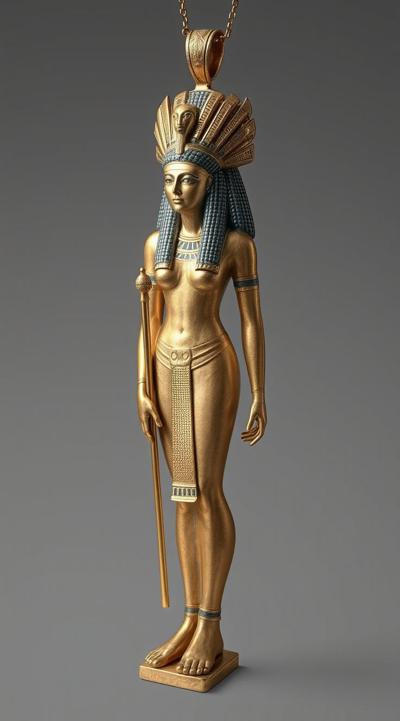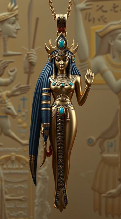 создай ювелирный кулон исиды в полный рост в точности повторяя ее изображение как на фресках храма Хатор в египте