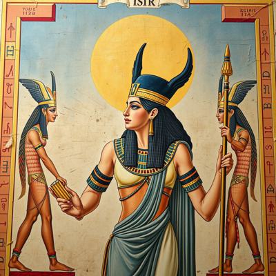 нарисуй изображение исиды в точности повторяя ее историческое изображение на фресках храма хатор в египте, исида в полный рост