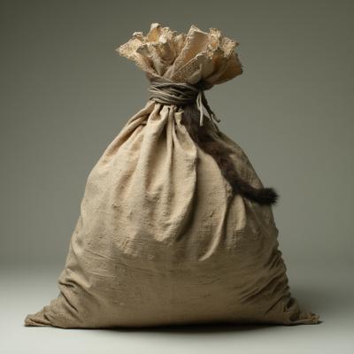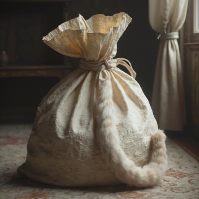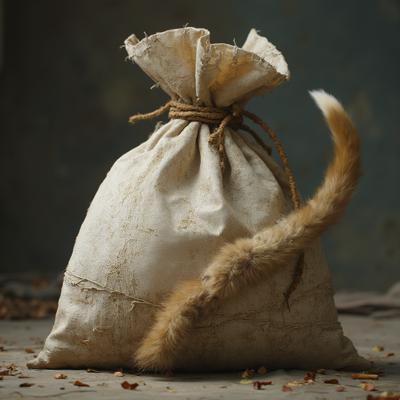 Большой завязанный мешок, из которого торчит кошачий хвост