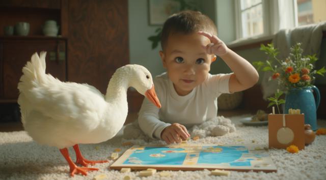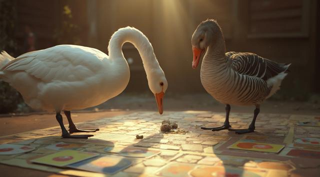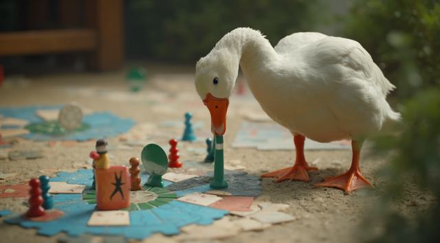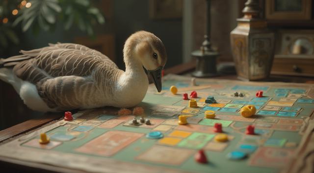 Гусь играет в настольную игру
