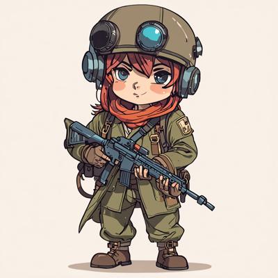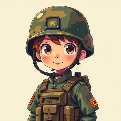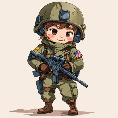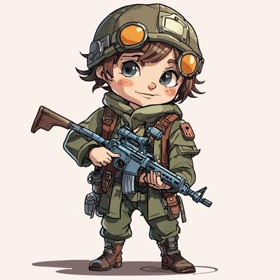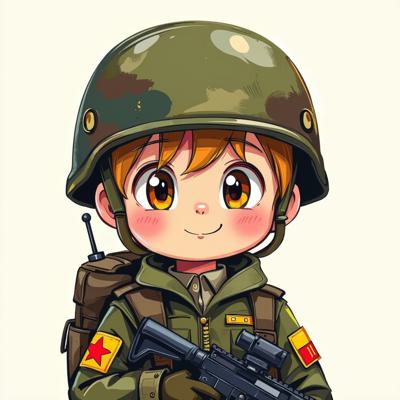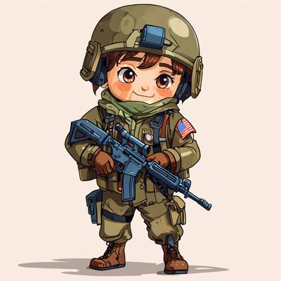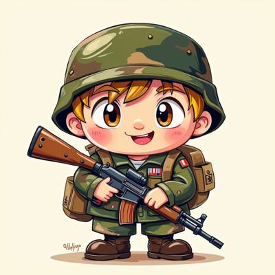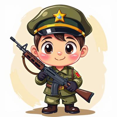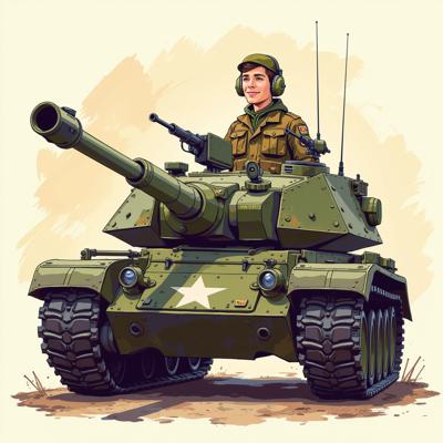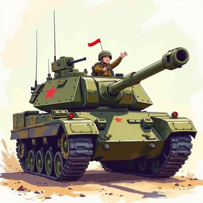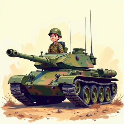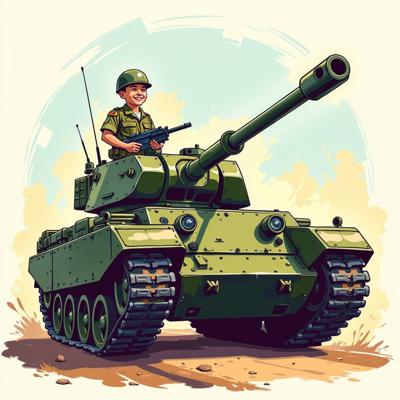 мультяшный стиль. военная русская техника с солдатиком. фон светлый.красивые милые глазки и улыбка , [Детализация для #6005419 ]
