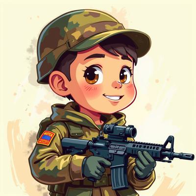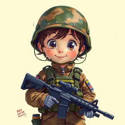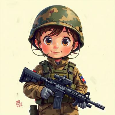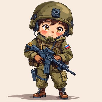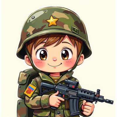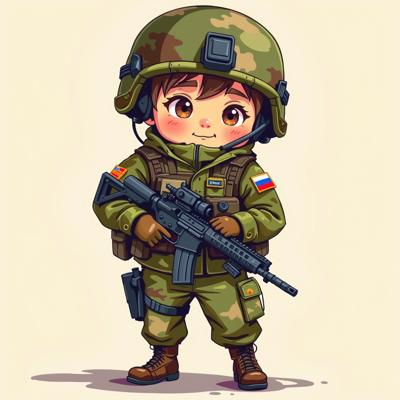 мультяшный стиль. военная русская техника с солдатиком. фон светлый.красивые милые глазки и улыбка ,