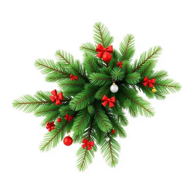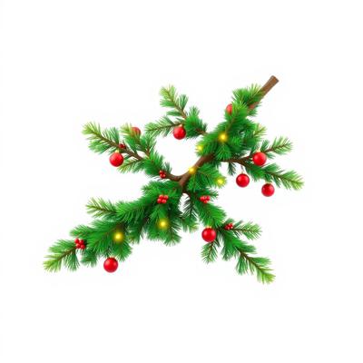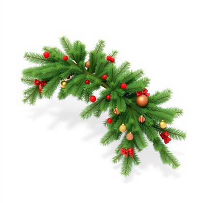 Убери огоньки, добавь ещё новогодних украшений [Уточнение с детализацией для #5978488 'a large, lush branch of a Christmas tree with small Christmas decorations, in the style of plastic 3d, on a white background, Isometric view ]'