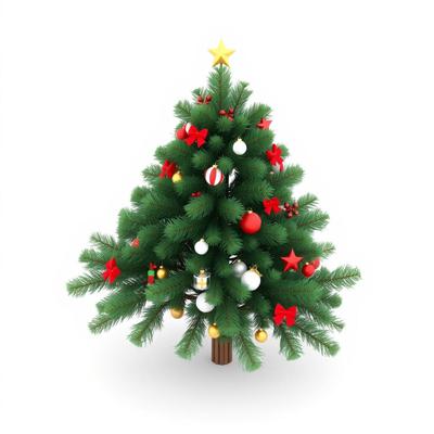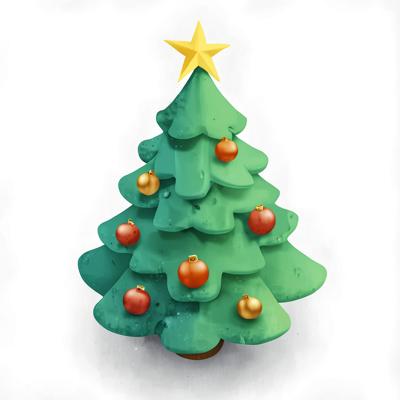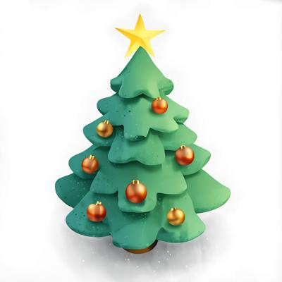 Уменьши звезду на верхушке елки [Уточнение с детализацией для #5976633 'небольшая звезда на верхушке елки, шарики лежат на елке нессиметрично [Уточнение для #5976612 'уменьши звезду, расположи шарики ассиметрично [Уточнение для #5976602 'звезда на верхушке елки поставь прямо в ракурсе ванфас, на елке шарики поменьше и убери крепления шариков [Уточнение для #5976155 'сделай звезду прямо в ракурсе анфас, шарики без креплений просто круглые [Уточнение для #5975937 'Stylized 3D vector Christmas tree, decorated with shiny baubles and a glowing