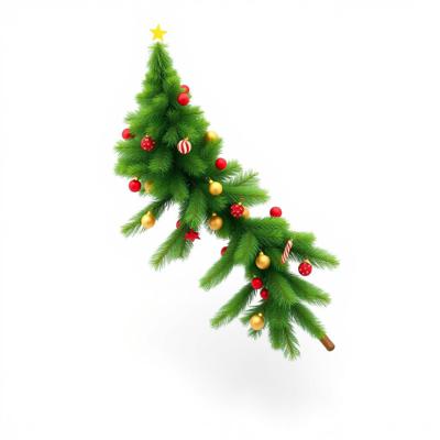 a large, lush branch of a Christmas tree with small Christmas decorations, in the style of plastic 3d, on a white background, Isometric view