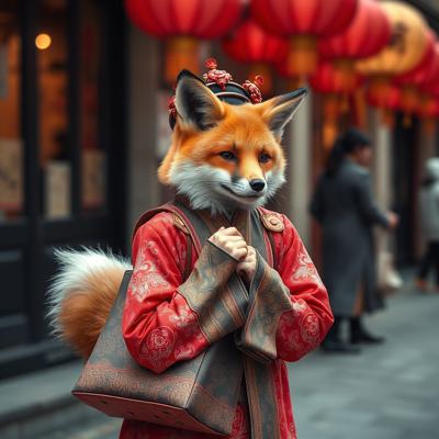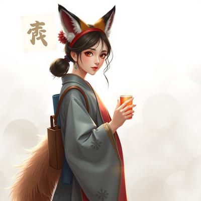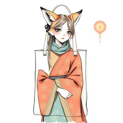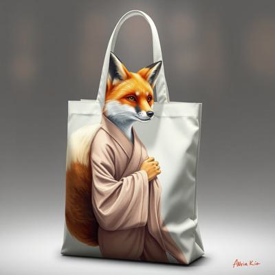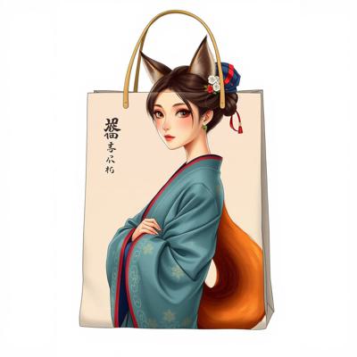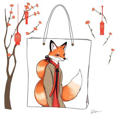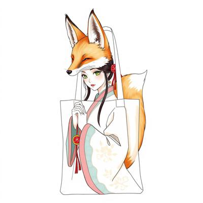 нарисовать сумку шоппер с изображением девушки - лисы одетой в ханьфу