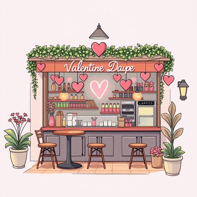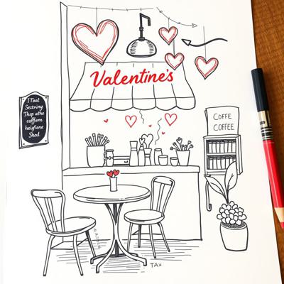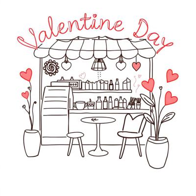 нарисовать дизайн кофейни на день святого валентина