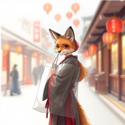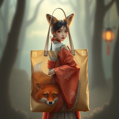создать сумку шоппер с изображением девушки лисы одетой в ханьфу