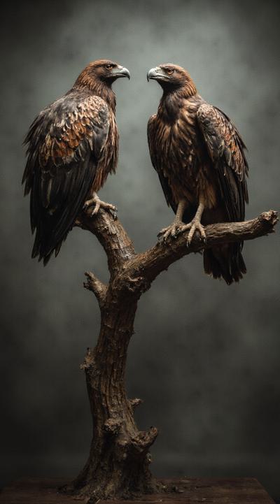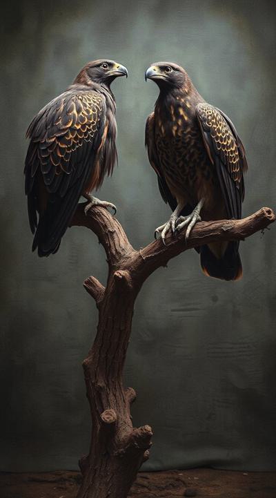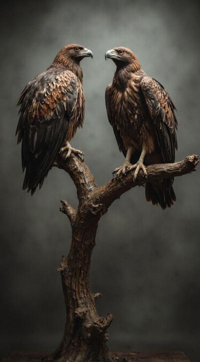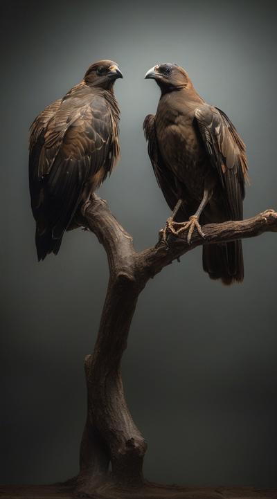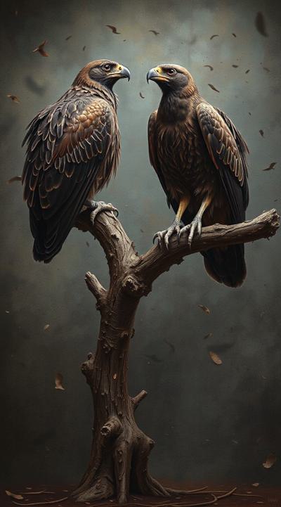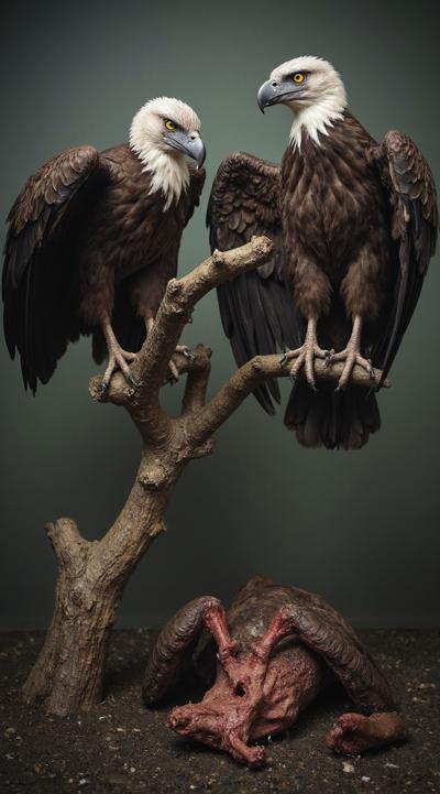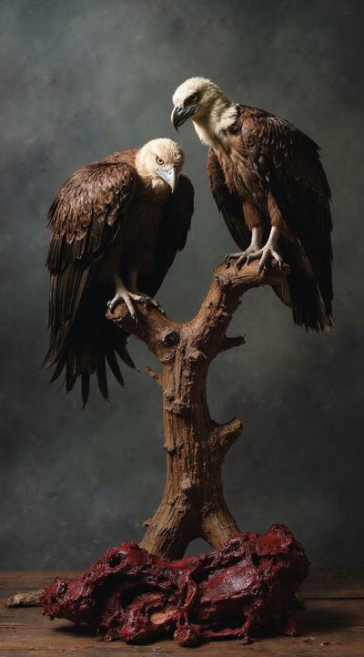 Две птицы Грифы с приподнятыми крыльями. сидят на ветке. ждут свою умирающею жертву [Вариации для #6307569 ]