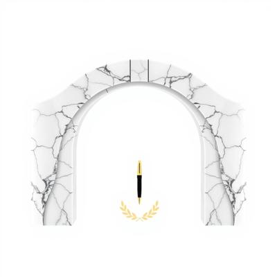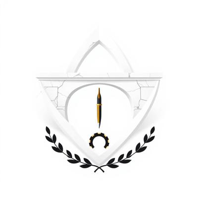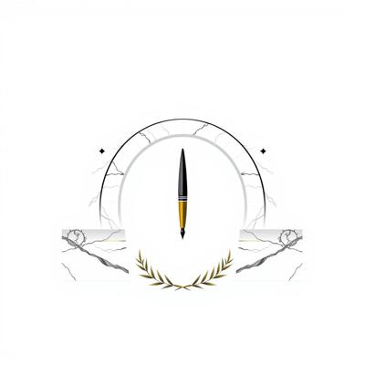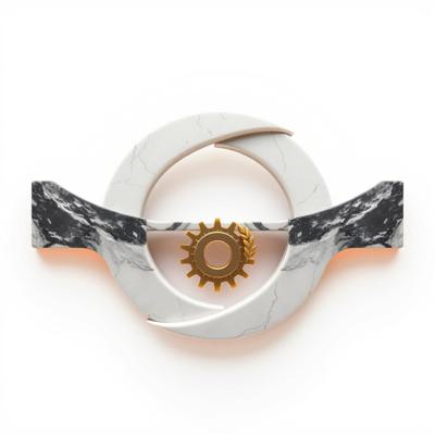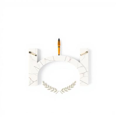 Abstract professional illustration of a stylized marble bridge or a solid architectural knot. Elegant clean lines, symbols of a fountain pen, a gear, and a laurel branch subtly integrated into the design. Golden ratio composition, white background, high-end business aesthetic, matte finish, isolated.