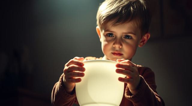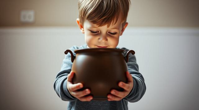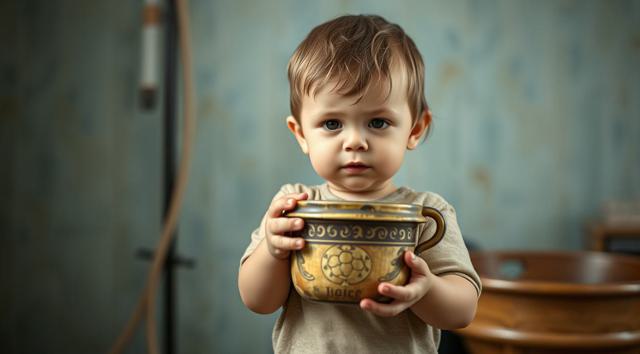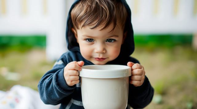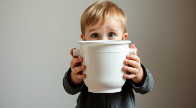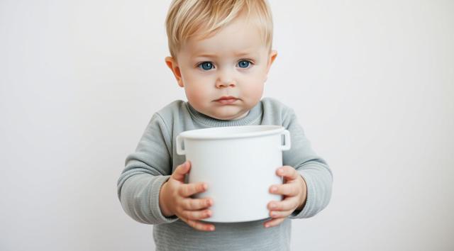 мальчик 3 года, в руках держит ночной горшок