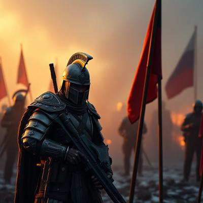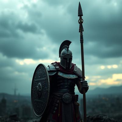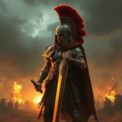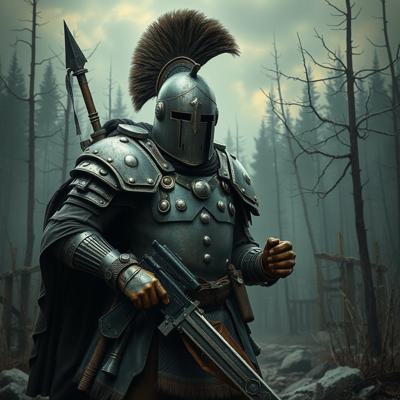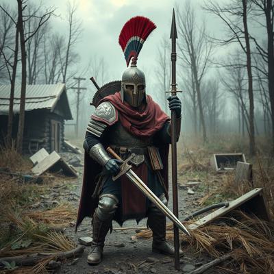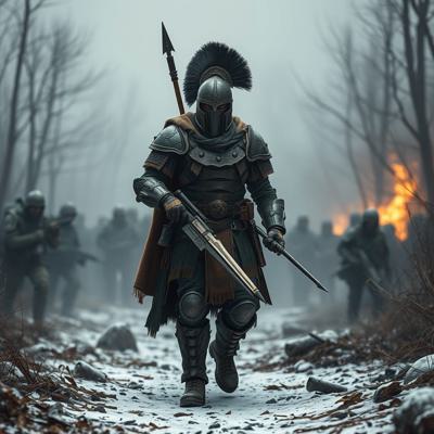 Центурион воин постапокалипсис и надпись доблесть честь отвага