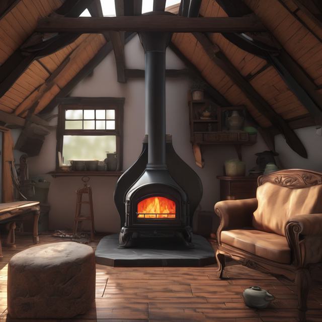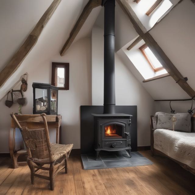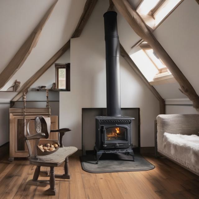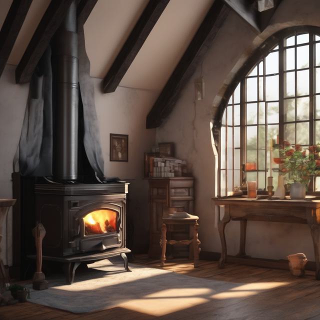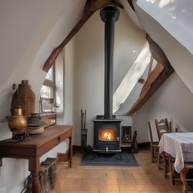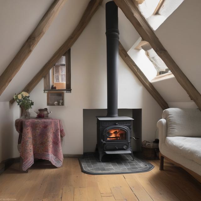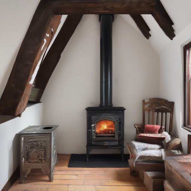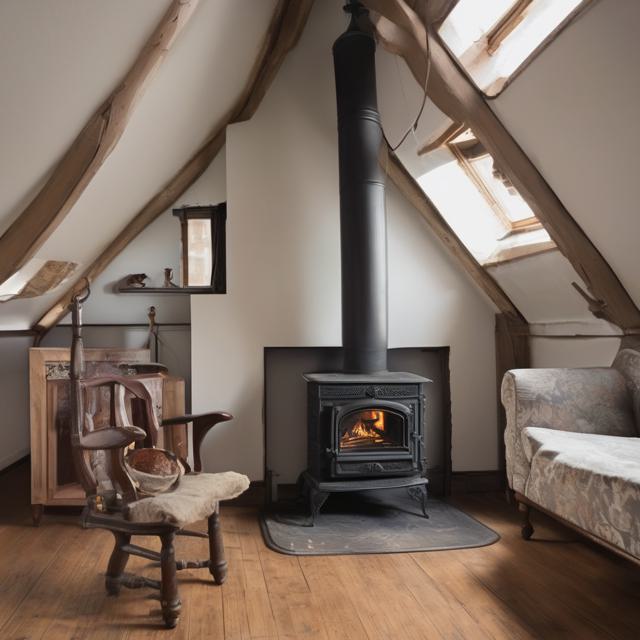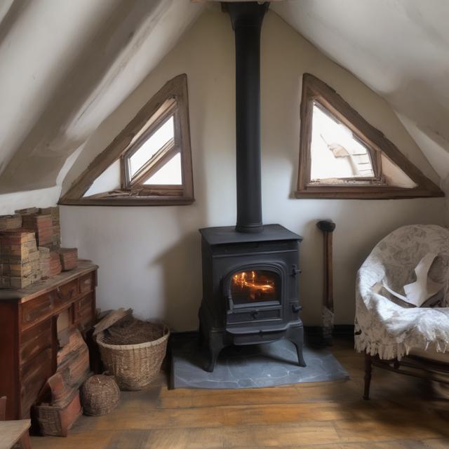 Печь камин чугунная стоит на чердаке за ней окна во двор