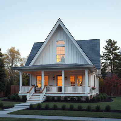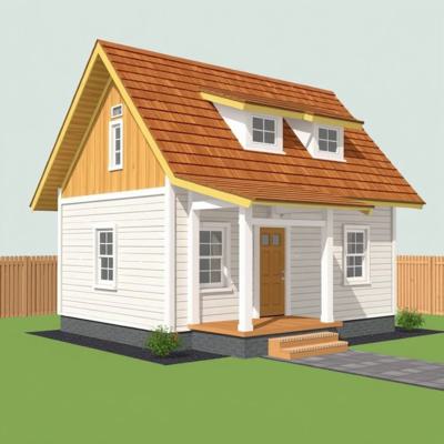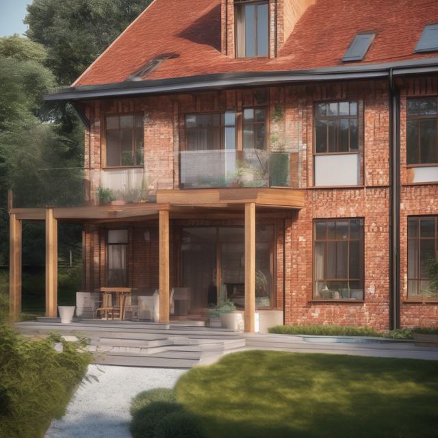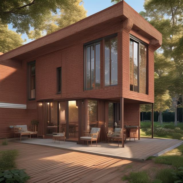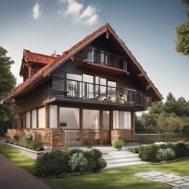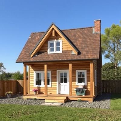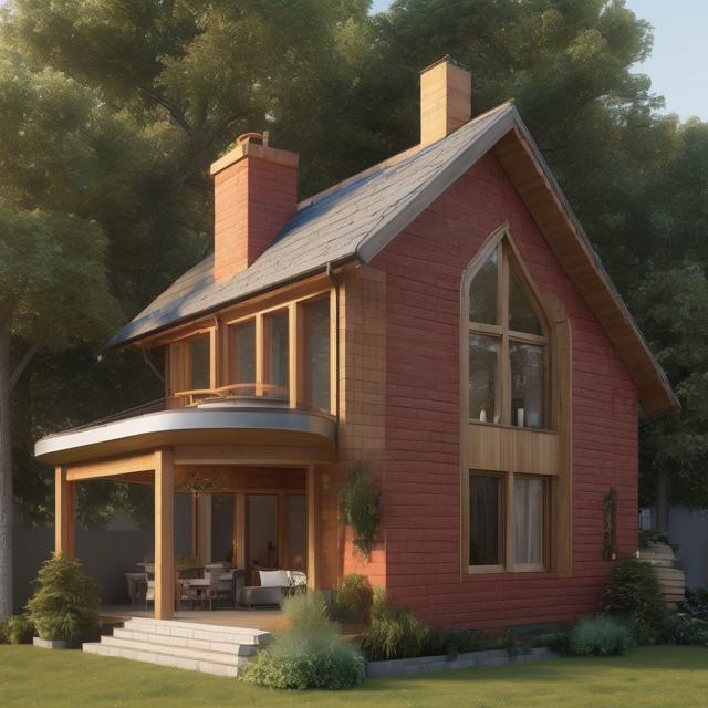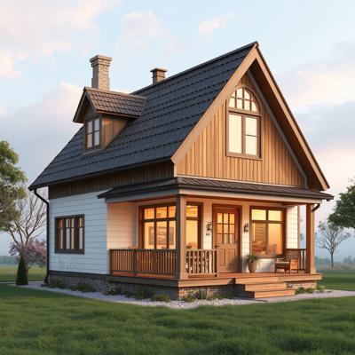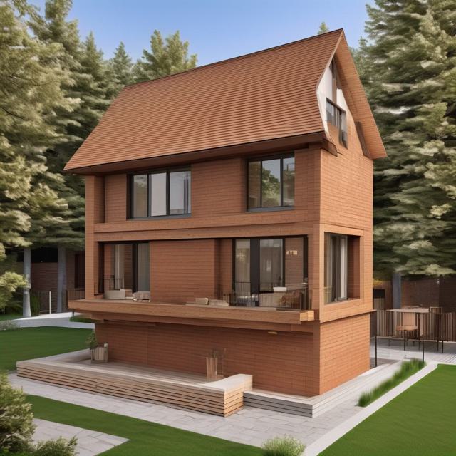Шале красный кирпич сайдинг монсарда блок хаус цвет золотой дуб веранда 6 на 6 метров
