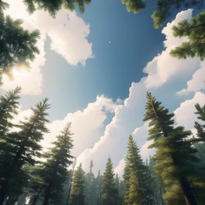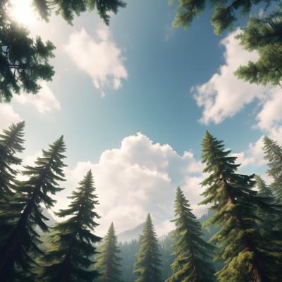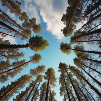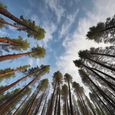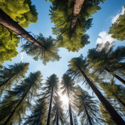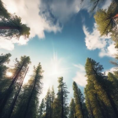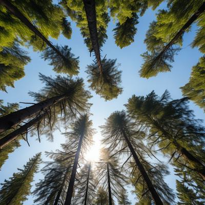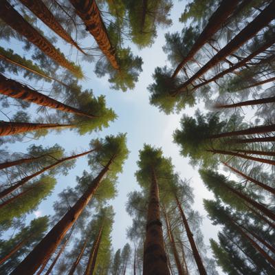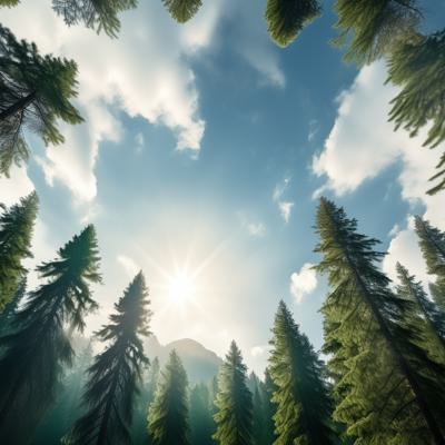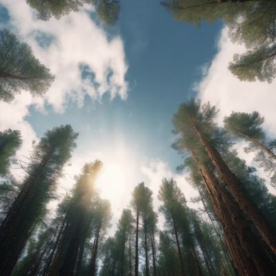 Лес сосновый больше солнца [Уточнение для #1930241 'Вид с низу вверх на небо верхушки хвойного леса горы ]'