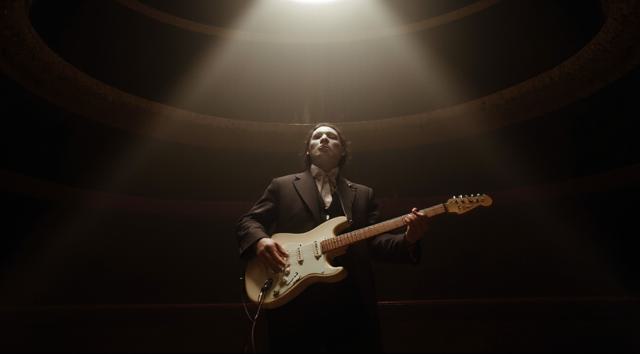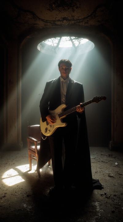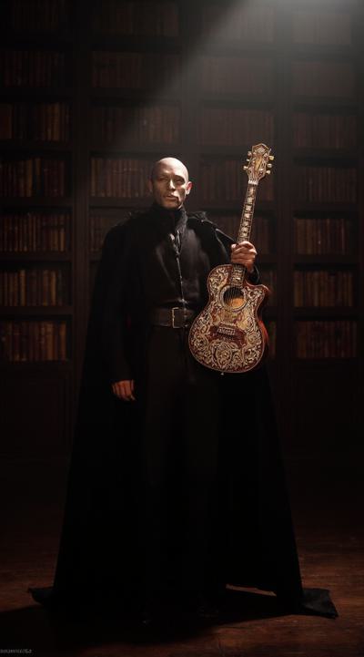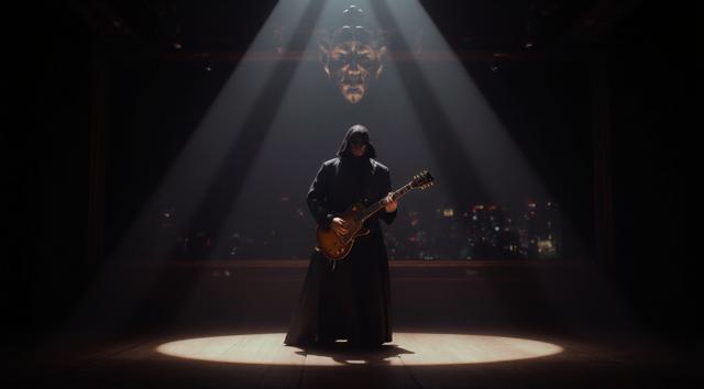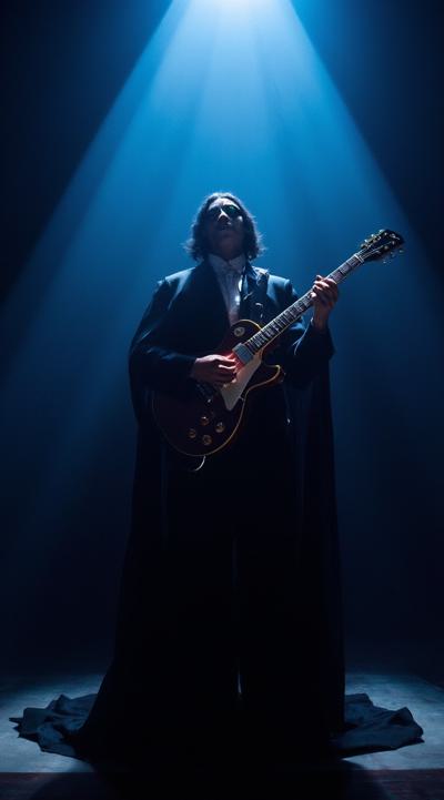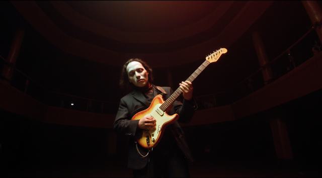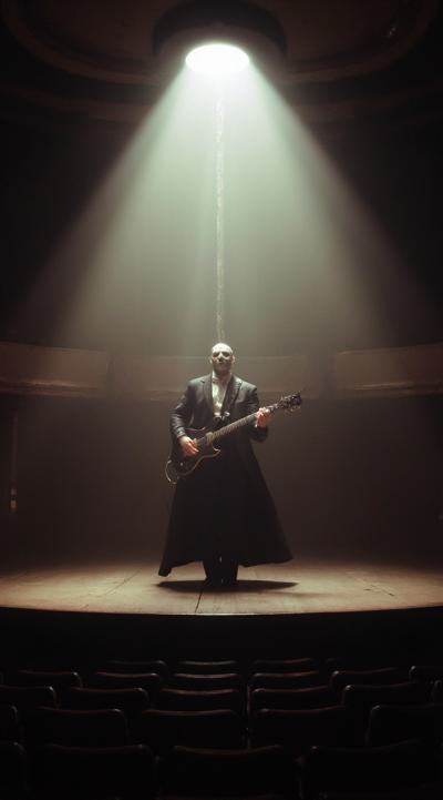 Призрак оперы в пустом зале на пустой сцене играет на электрогитаре
