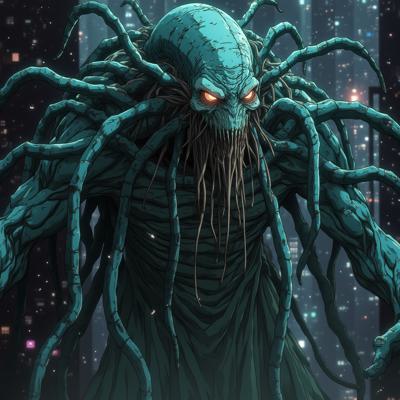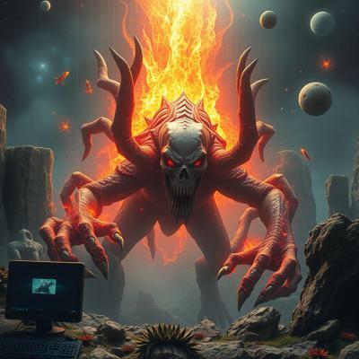 древнее жуткое чудище, но оно компьютерный вирус прямо в цифровом пространстве