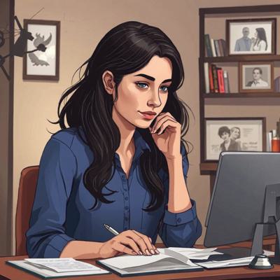 Чат с психологом, онлайн переписка, помощь в сложной ситуации, реалистичная картинка, добрый психолог-девушка с темными волосами, грустный клиент