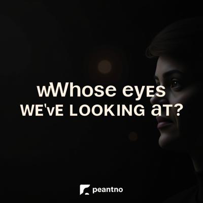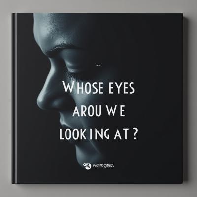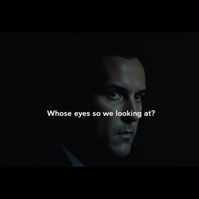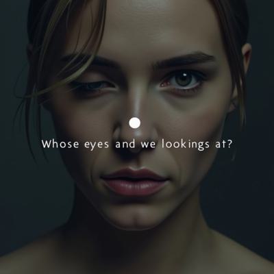 Лицо крупным планом, в центре композиции глаза. Глаза прищурены, смотрят вбок. Текст: Чьими глазами смотрим?