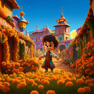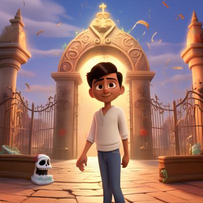 Сгенерируй картинку из мультика тайна Коко .ЗАГРОБНЫЙ МИР ОТКРЫЛ СВОИ ВРАТА! ЮНЫЙ МИГЕЛЬ ПРОПАЛ БЕЗ ВЕСТИ!(тайна коко)