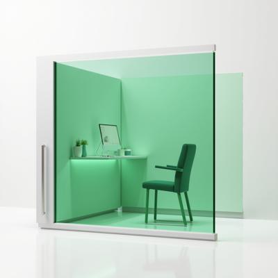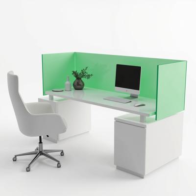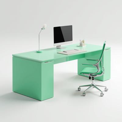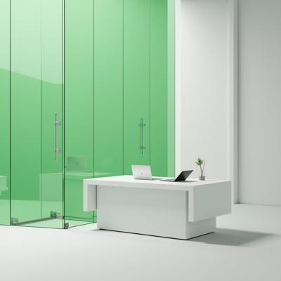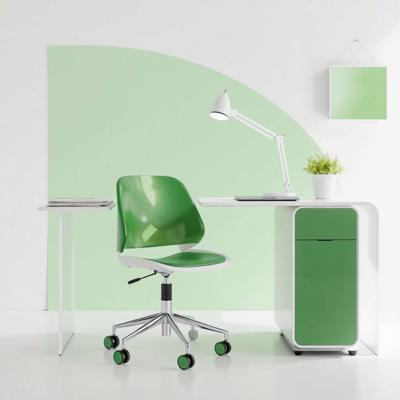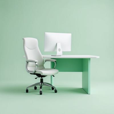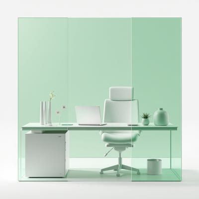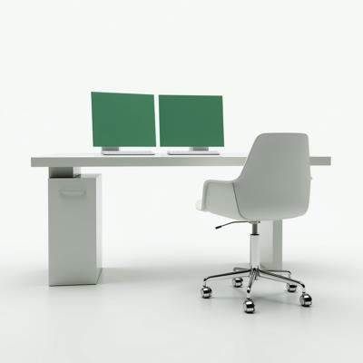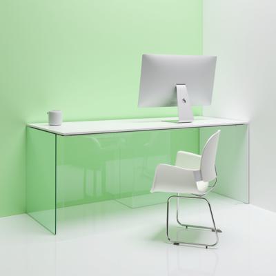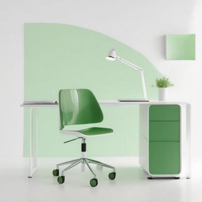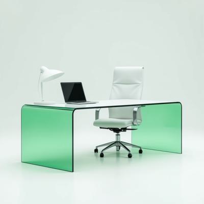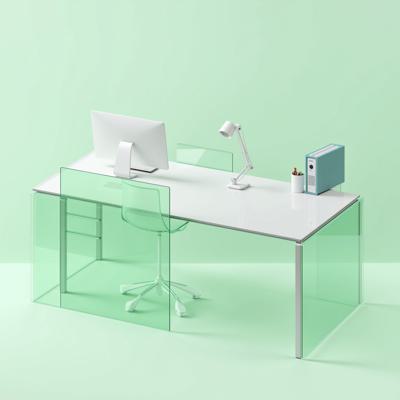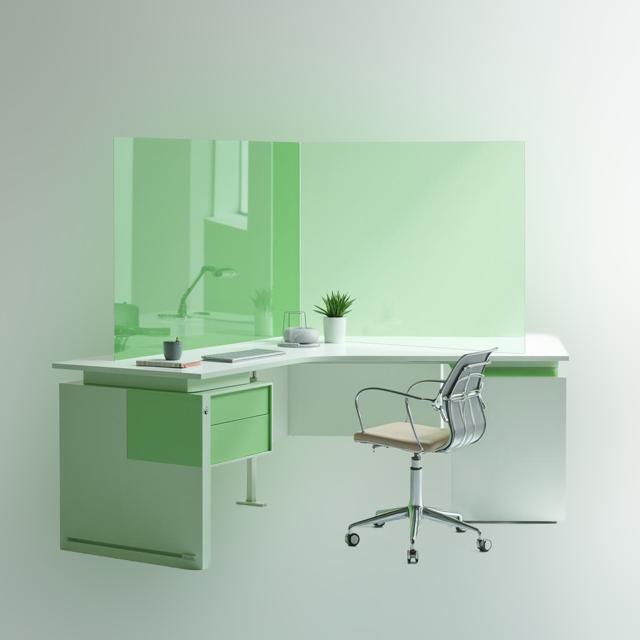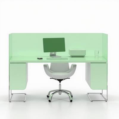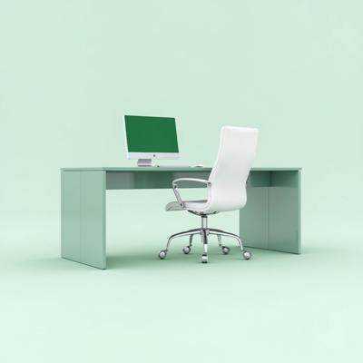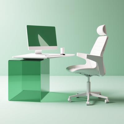 офисное рабочее место. Белый глянцевый пластик, зеленое прозрачное стекло, серебристый металл, [Вариации (0.8) для #6187682 [Вариации (0.8) для #6187679 ]]
