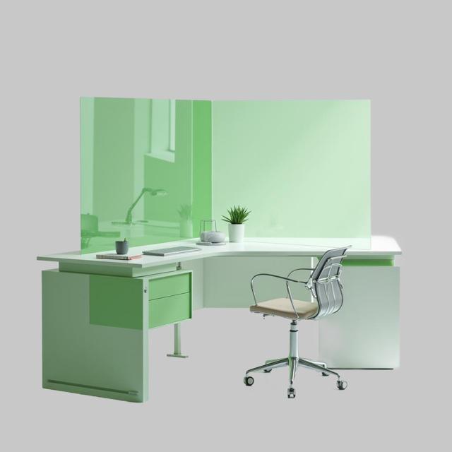 [Без фона #6187681 'офисное рабочее место. Белый глянцевый пластик, зеленое прозрачное стекло, серебристый металл, ]'