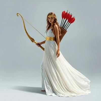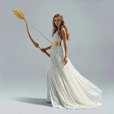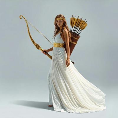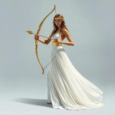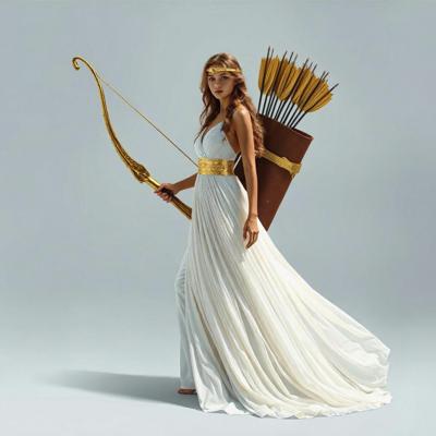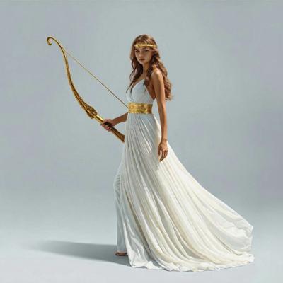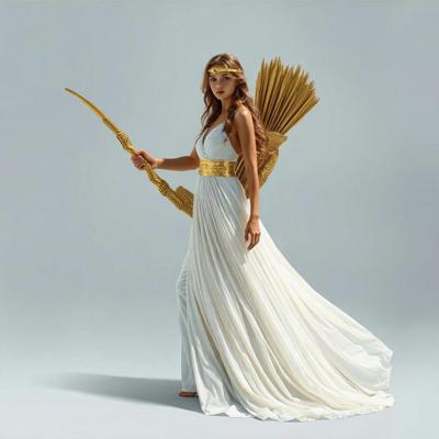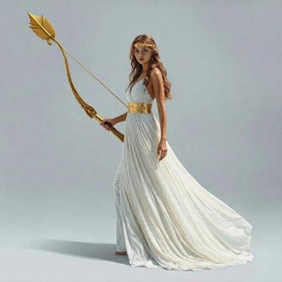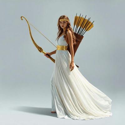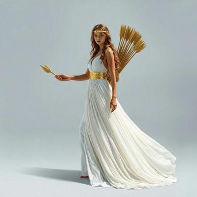 Убрать оперение на спине девушки [Качество x3 [Уточнение для #6198567 'в руке держит золотой лук со стрелой [Уточнение для #6198566 'сделать тонкий золотой шелковый пояс. Надеть на голову золотой тонкий ободок. [Качество x3 [Уточнение для #6198510 'длинное белое платье похожее на платье Дианы-охотницы ]']]']']