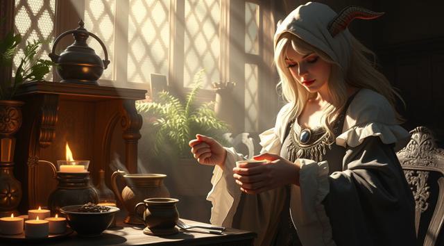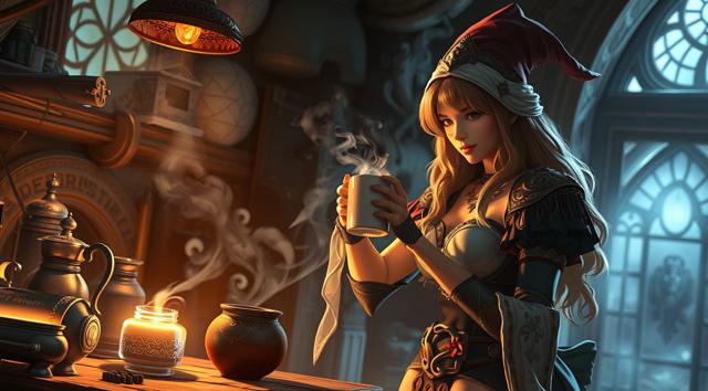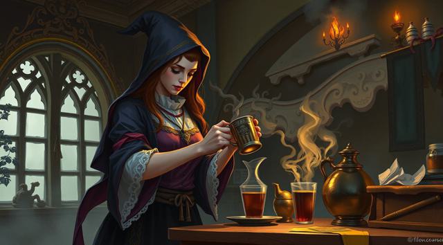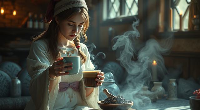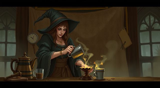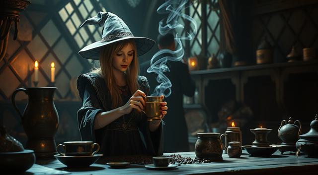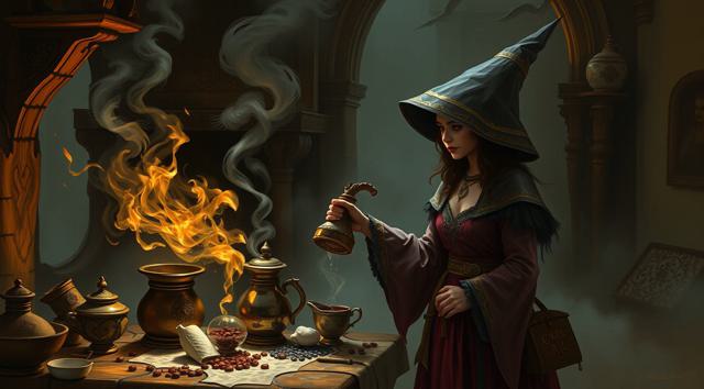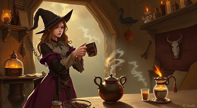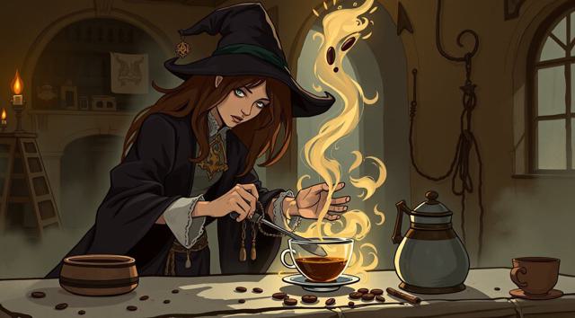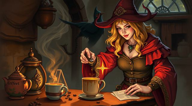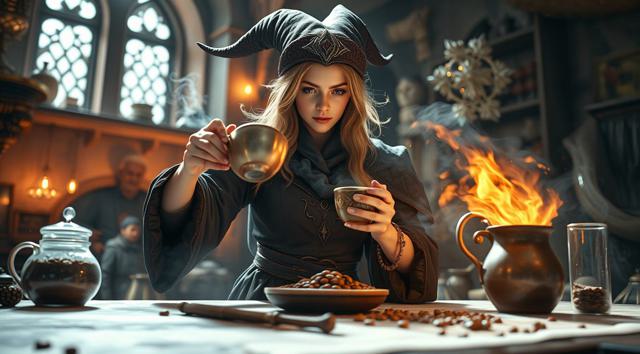 Волшебница готовит кофе,