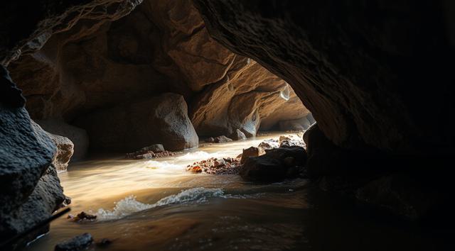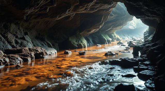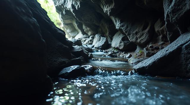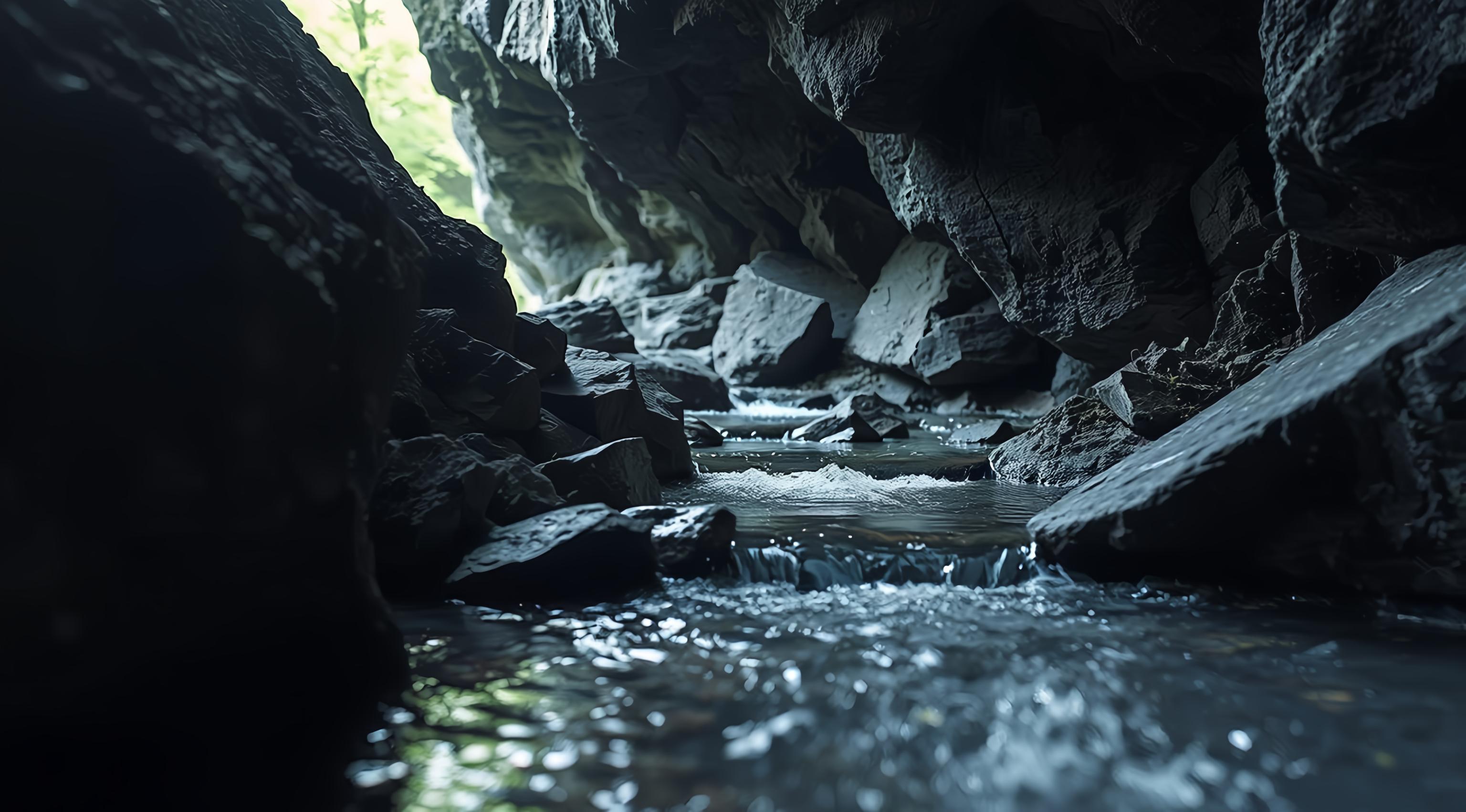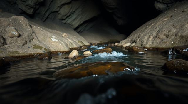 Ручей в пещере, крупный план, [Улучшение крупных деталей ]