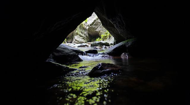 Ручей в пещере, крупный план,