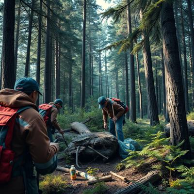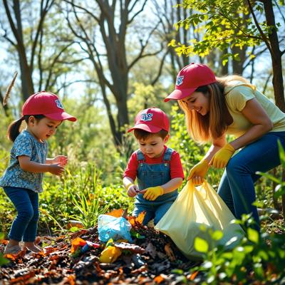 дети старше в кепках [Уточнение для #6124345 'родители с детьми на природе, убирают мусор вместе, волонтерство ]'