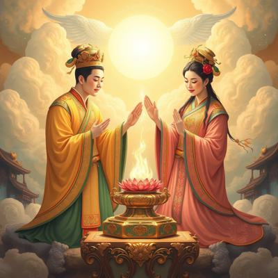 славянский бог огня, высокий мужчина с рыжими волосами, владеет златогривым вороным конем. В руках Бога огненный меч