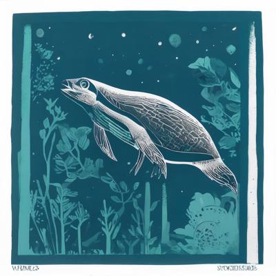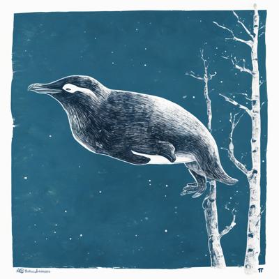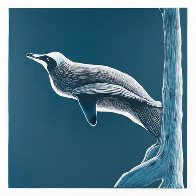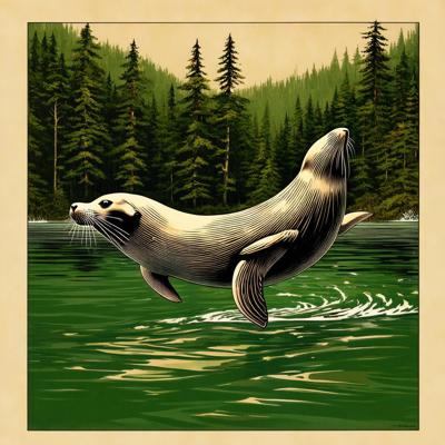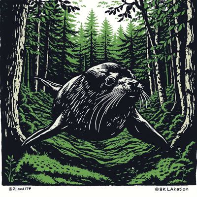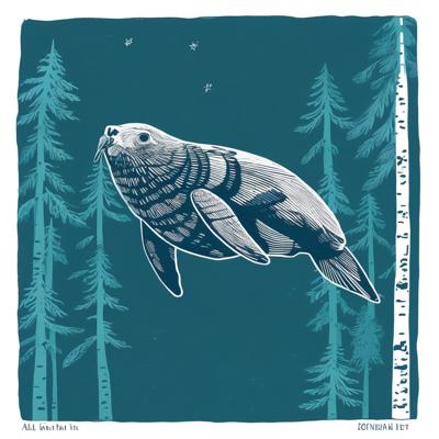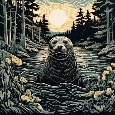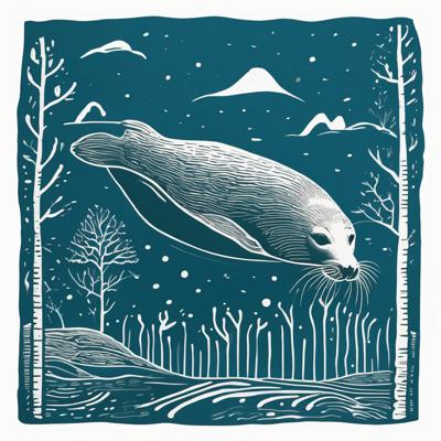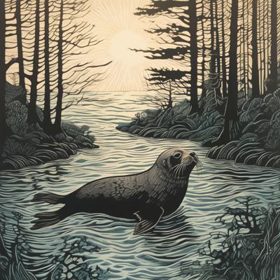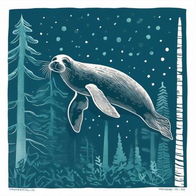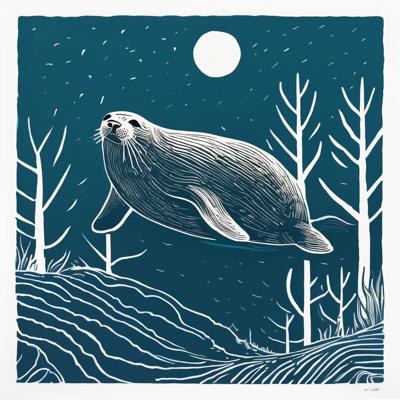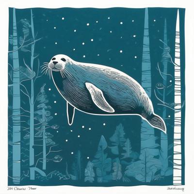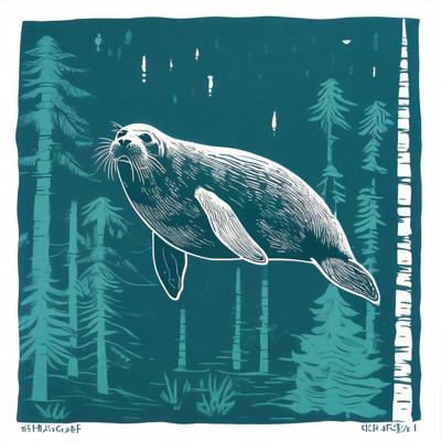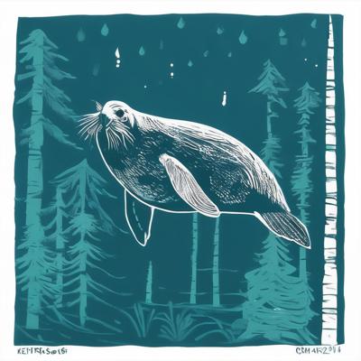 Нерпа плывет над лесом, линогравюра [Вариации (0.8) для #4838031 ]