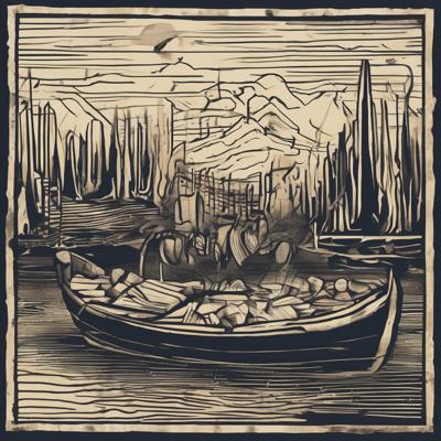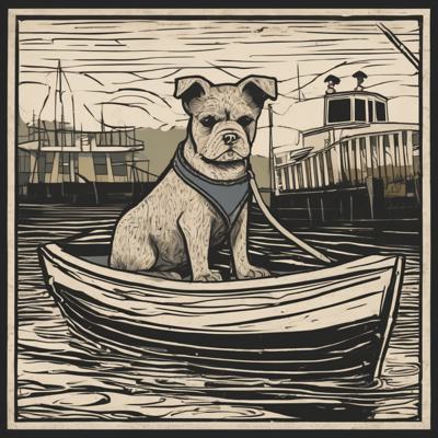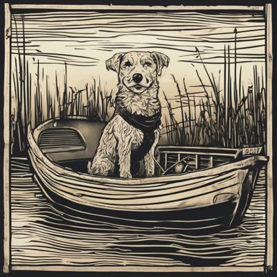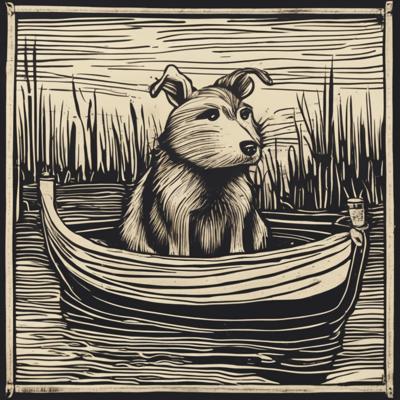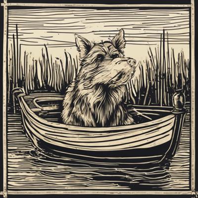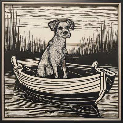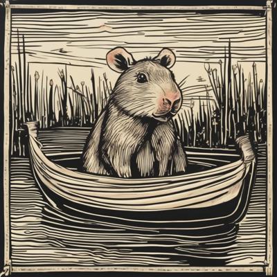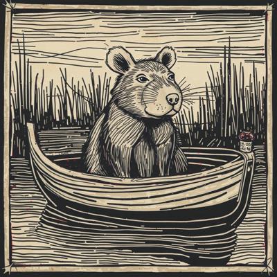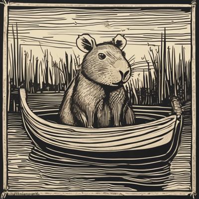 Капибара сидит в лодке, линогравюра [Вариации для #4835471 ]