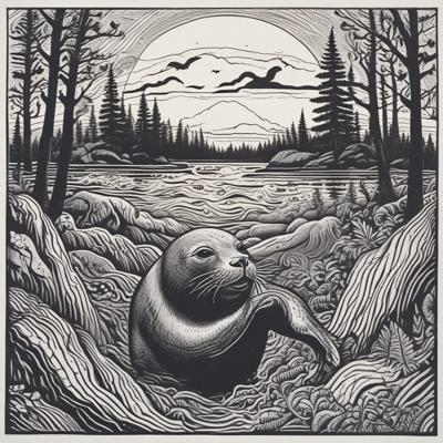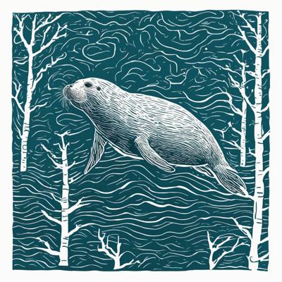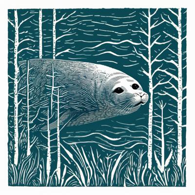 Меньше деталей [Уточнение для #4838031 'Нерпа плывет над лесом, линогравюра ]'
