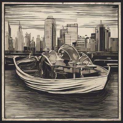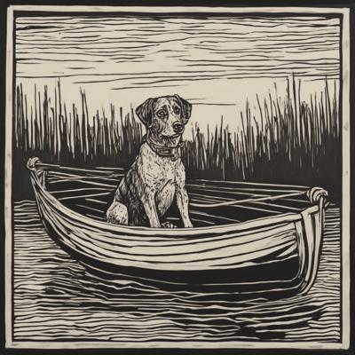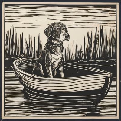 Капибара сидит в лодке, линогравюра [Вариации (0.8) для #4838013 [Вариации для #4835471 ]]
