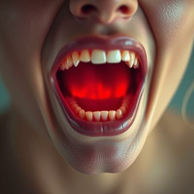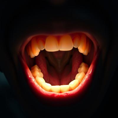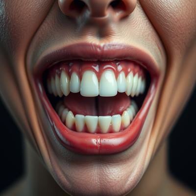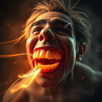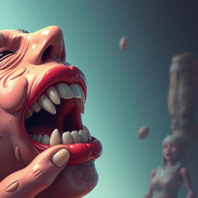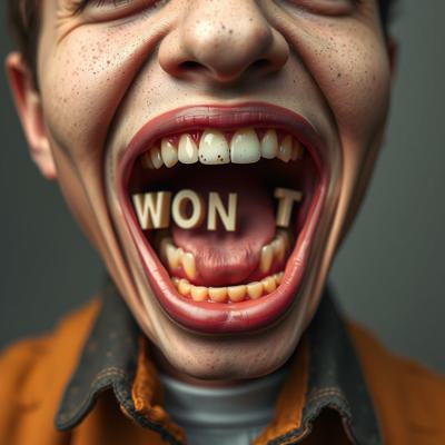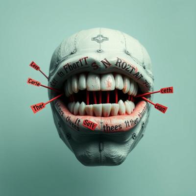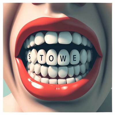 придумай айдентику основанную на том что между зубов застревают слов