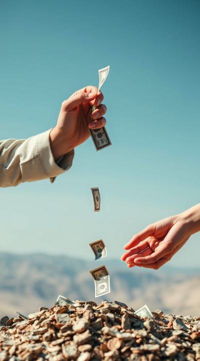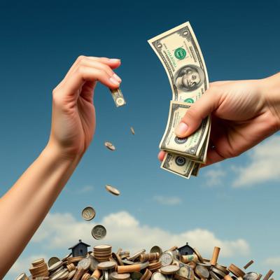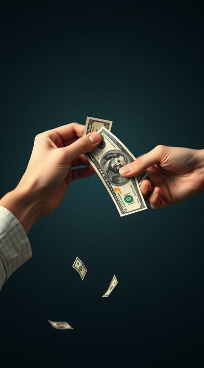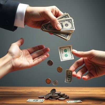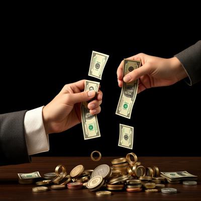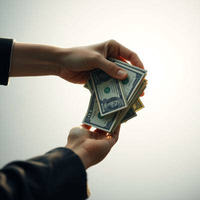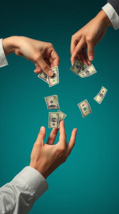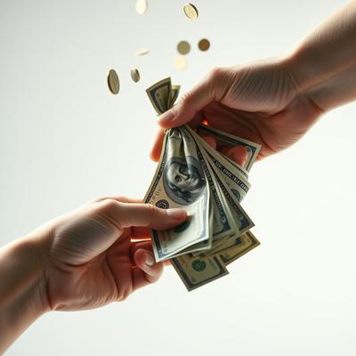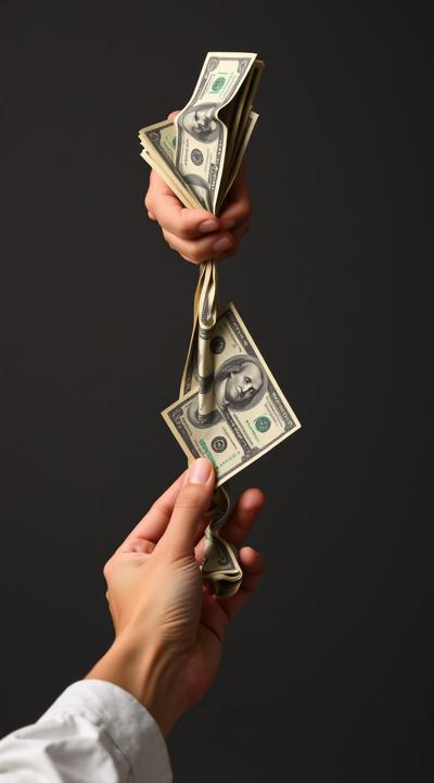 одна рука тянет деньги внизу вверх, а другая берет сверху вниз