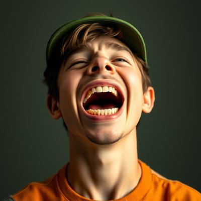 парень с клювом дятла трогает свой клюв и глаза испуганные