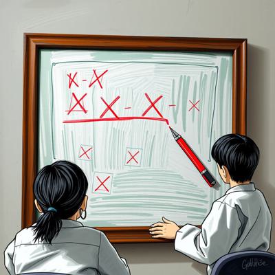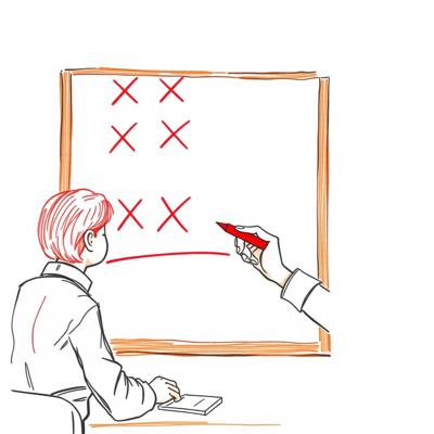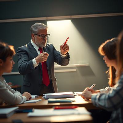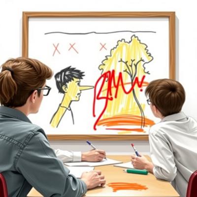 нарисуй картинку училка постоянно исправляет только ошибки учеников жирной красной ручкой а успехи не замечает