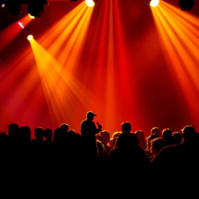 молодая охотница с луком или арбалетом в весеннем пейзаже, светит солнце, зелень травы и цветущие деревья голубое небо, солнце