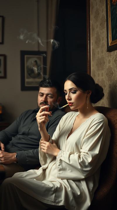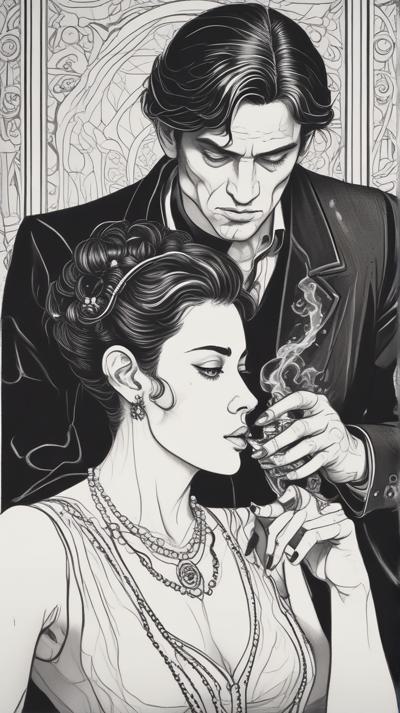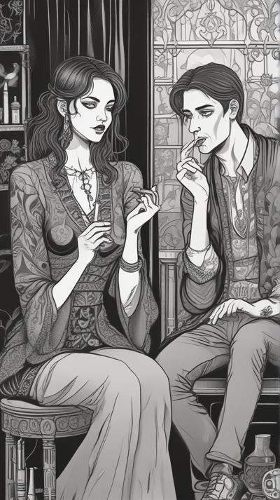 парень и девушка сидят дома курят опиум черные ногти и губы в стиле анимации