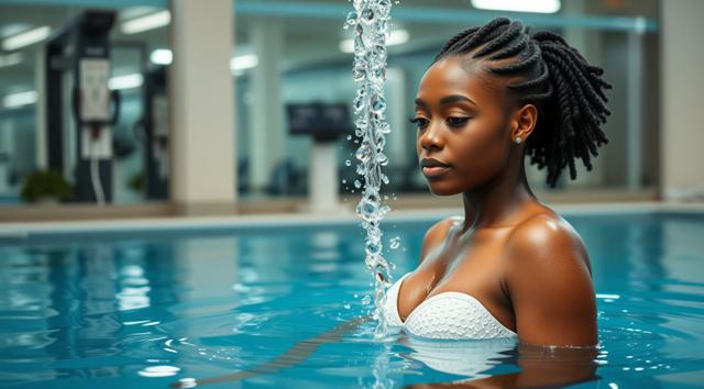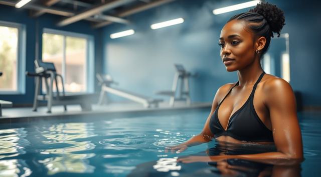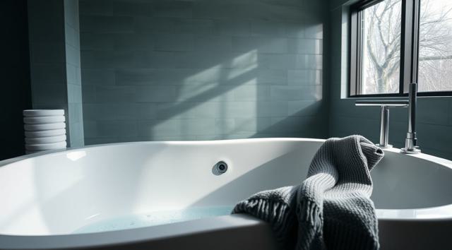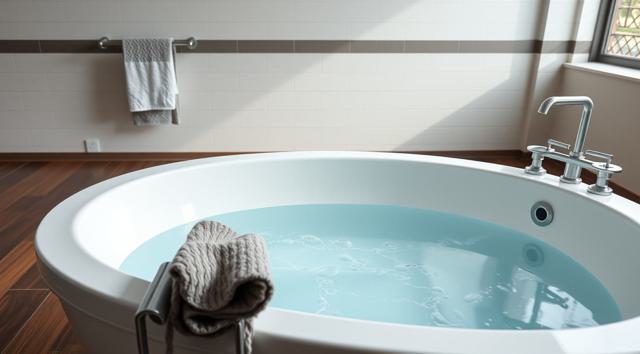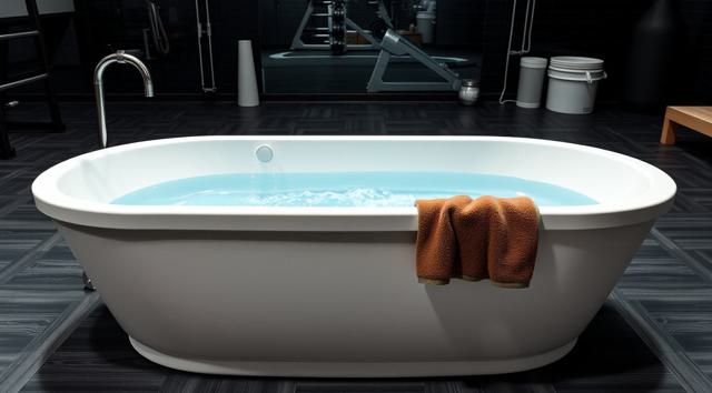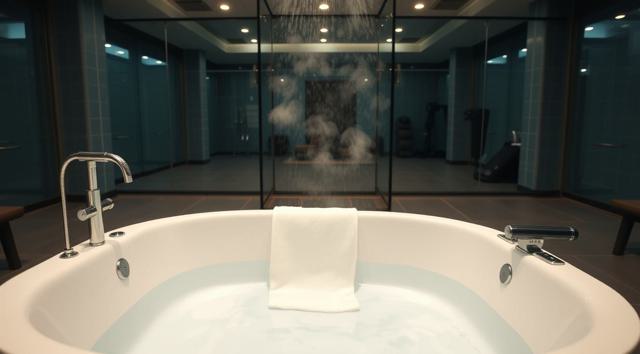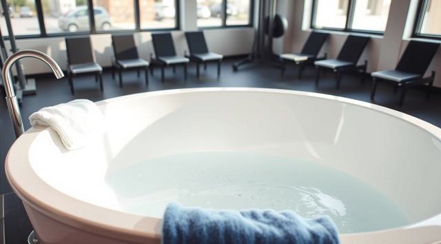 пустая ванна с полотенцем в тренажерном зале с водой для озонотерапии, без людей