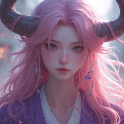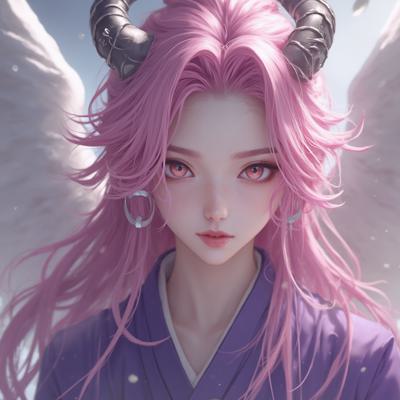 Демон с лицом 19-летнего ангела, рассеченным тонким шрамом. На нем — каскад пепельно-розовых густых волос до пят с серебряными кольцами и шелк фиолетового ханьфу, одежда легкая и воздушная. Национальность — китайская